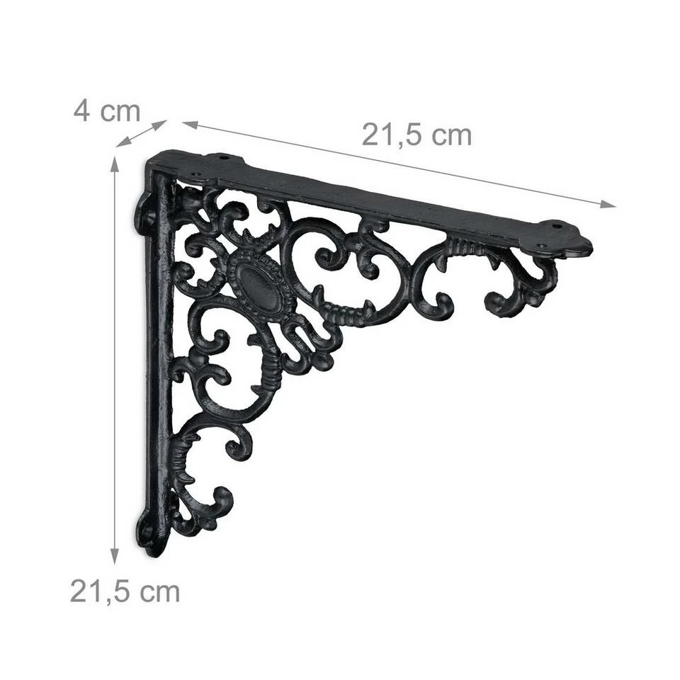 Winkelkonsole für unterschiedliche Regalbretter Die Regal Winkelträger im 8er Set sind praktisch und dekorativ zugleich. Mit einem beliebigen Regalbrett verwandeln Sie die Regalträger in ein einzigartiges und individuelles Wandregal. Gleichzeitig bringen Sie mit der Regalkonsole ganz besonderen Charme in Ihre vier Wände. Setzten Sie antike Akzente im Vintage-Look und nutzen Sie die barocken Ornamente als dekoratives Highlight. Ebenso lassen sich mit den Regalhalterungen auf dem Balkon oder an der Gartenhütte rustikale Akzente setzen.