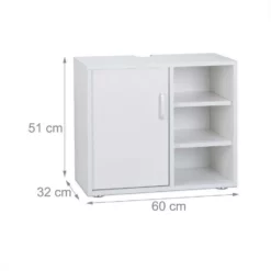- Details: Der Badezimmerschrank besteht aus lackiertem MDF – Maße H x B x T ca. 51 x 60 x 32 cm