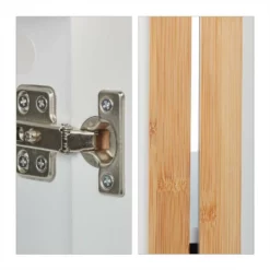 - Design: Badschrank in klassischem Weiß passt in jedes Badezimmer – Mit Bambuselementen als Hingucker