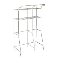 - Design: Schmales Überbauregal in Silber u. Weiß – Geeignet für viele Badeinrichtungen – Ohne Bohren