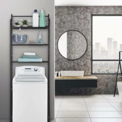 - Ablagen: Überbauregal mit 3 großzügigen Ablagen für Waschmittel, Putzutensilien, Handtücher und mehr