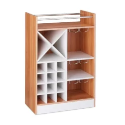 relaxdays Weinregal »Großes Weinregal mit Weinglashalter«, Braun Weiß Silber, Hellbraun Weiß Silber, Schwarz Silber