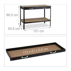 Praktischer Werkstatttisch aus Metall Diese Werkbank mit 2 Ebenen und Schublade ist perfekt für Keller, Garage oder Werkstatt geeignet. Die obere Ebene dient gleichsam als Arbeitstisch, an dem Du nach Lust und Laune hämmern, sägen, bohren und schrauben kannst. In der Schublade finden Schrauben, Nägel und Werkzeuge ihren Platz ohne beim Arbeiten zu stören. Praktisch ist die Ablage darunter mit Stauraum für Deine anderen Projekte oder zusätzliches Zubehör. Der robuste Stahltisch ist vielseitig und auch als Lagerregal oder Packtisch nutzbar.