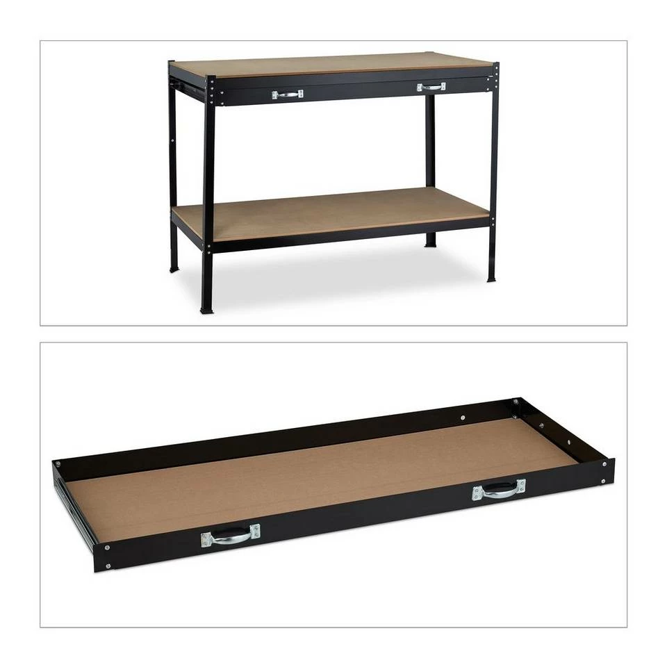 - Praktisch: Werkbank mit 2 Ebenen und Schublade – MDF Platte zum Arbeiten – Stauraum für Werkzeug