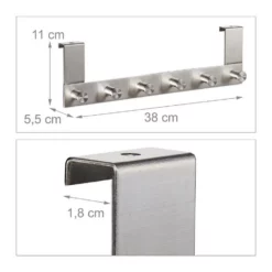 Vielseitige Garderobenhaken zum Einhängen Sorgen Sie für Ordnung im Eingangsbereich, Schlafzimmer oder Bad mit diesen Türkleiderhaken. Hängen Sie die robuste Garderobenleiste aus rostfreiem Edelstahl dazu einfach über die Tür. Schon können Taschen, Jacken oder Handtücher an den 6 Kleiderhaken übersichtlich und griffbereit aufbewahrt werden. Für mehr Halt kann die Türhalterung optional angeschraubt werden. Die Hakenleiste ist für Türen mit Falz geeignet.
