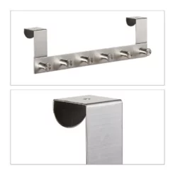 Vielseitige Garderobenhaken zum Einhängen Sorgen Sie für Ordnung im Eingangsbereich, Schlafzimmer oder Bad mit diesen Türkleiderhaken. Hängen Sie die robuste Garderobenleiste aus rostfreiem Edelstahl dazu einfach über die Tür. Schon können Taschen, Jacken oder Handtücher an den 6 Kleiderhaken übersichtlich und griffbereit aufbewahrt werden. Für mehr Halt kann die Türhalterung optional angeschraubt werden. Die Hakenleiste ist für stumpfe Türen geeignet.