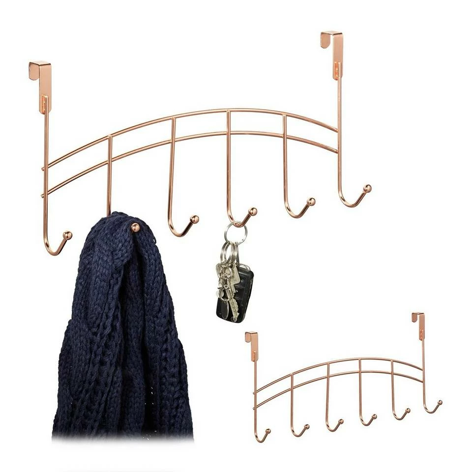Vielseitiger Jackenaufhänger für Türen Für Wohnungen, in denen Platz gespart werden muss, ist diese Türgarderobe ideal. Ohne Bohren lässt sich die Hakenleiste einfach in der Tür einhängen und bietet mit 6 Haken viel Stauraum. Im Flur sind die Türhaken die perfekte Garderobe für Jacken und Schals, im Schlafzimmer eignen sich die Kleiderhaken für Kleidung und Taschen. Sogar im Bad oder der Küche ist der Türhänger praktisch: feuchte Handtücher, Bademantel oder wahlweise Schürze und Trockentücher lassen sich darauf aufhängen.