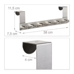 Vielseitige Garderobenhaken zum Einhängen Sorgen Sie für Ordnung im Eingangsbereich, Schlafzimmer oder Bad mit diesen Türkleiderhaken. Hängen Sie die robuste Garderobenleiste aus rostfreiem Edelstahl dazu einfach über die Tür. Schon können Taschen, Jacken oder Handtücher an den 6 Kleiderhaken übersichtlich und griffbereit aufbewahrt werden. Für mehr Halt kann die Türhalterung optional angeschraubt werden. Die Hakenleiste ist für stumpfe Türen geeignet.