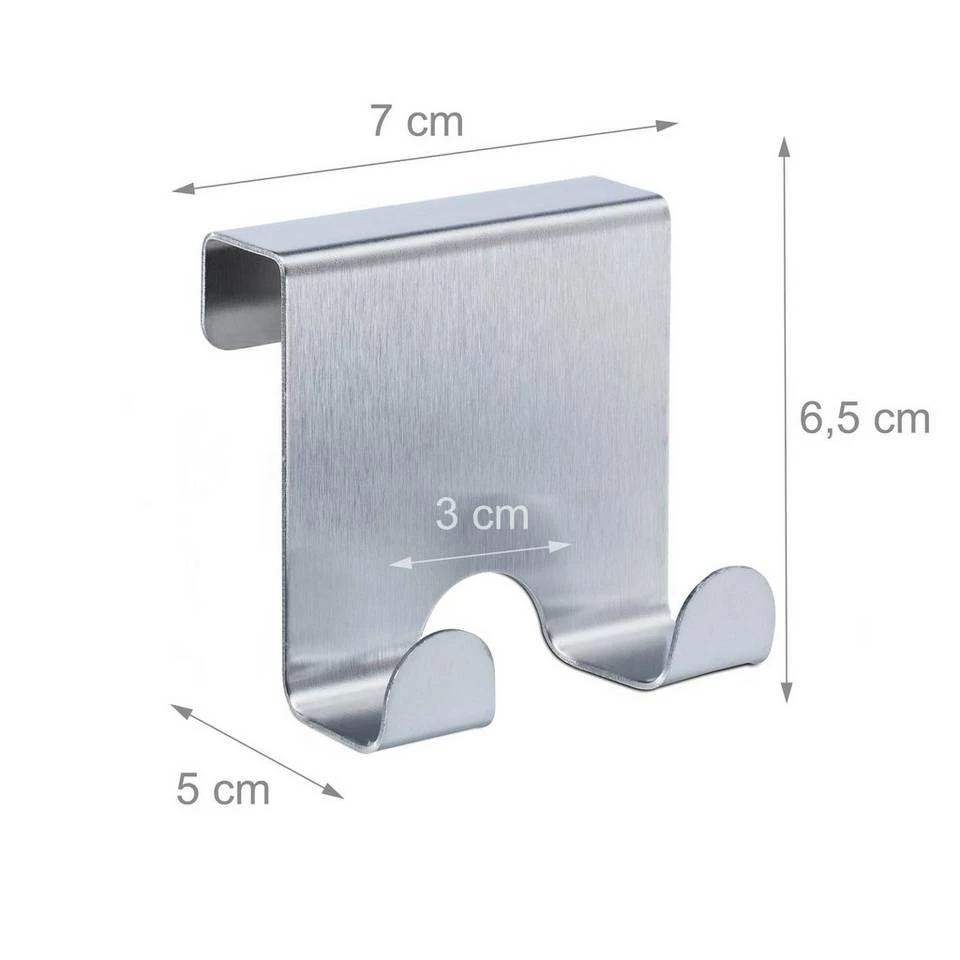 Türgarderobe zum Einhängen Bei Ihnen Zuhause benötigen Sie noch eine flexible Aufbewahrungslösung? Dann sind diese doppelten Türhaken im 40er Set genau das Richtige für Sie. Denn ob an Türen, Schränken oder Fenstern, fast überall können Sie an diesen Haken Taschen, Jacken und Accessoires aufhängen – auch Handtücher und Topflappen. Denn dank des rostbeständigem Edelstahls sind diese Doppelhaken auch für Feuchträume wie Badezimmer oder Küche geeignet. Die 2 Haken je Türhänger sind besonders praktisch bei begrenztem Platz.